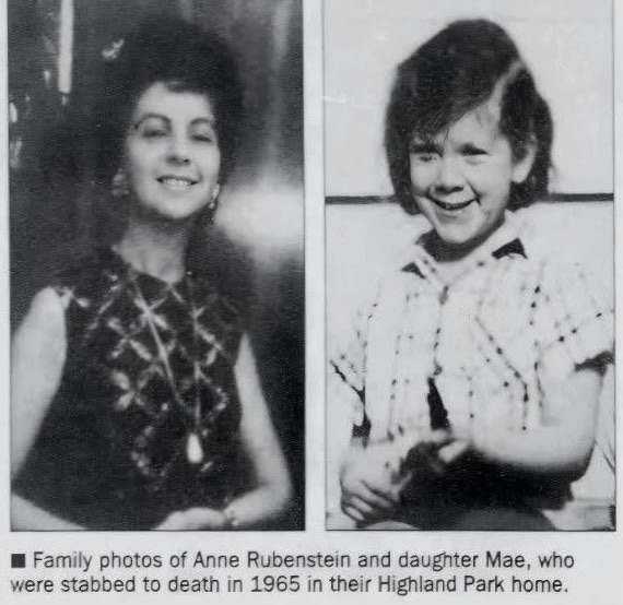 12 year old Mae Rubenstein, a 6th grader at Lafayette School, was left alone in her home at 437 S. Third Avenue, Highland Park New Jersey, while her mother, Anne, was food shopping and her father Robert was working with her brother Elihu at the Star Lumber Co., in town, on February 13, 1965. Upon Anne’s return from the grocery store, she ended up finding Mae, slain in the kitchen. The mother confronted the attacker and, like her daughter, was savagely stabbed in the neck, face and chest. The Middlesex County medical examiner determined that Anne Rubenstein was attacked with a long-bladed kitchen knife about 35 times. Mae suffered 15 stab wounds and her jugular vein was slashed. Anne’s body was found 2 hours later in the foyer by her 9 year old nephew Maurice Feller, who came to the home to get a drink of water. She was lying in a pool of blood, and the surrounding area showed signs of a desperate scuffle. Rubenstein was still wearing her heavy winter coat, and loaves of bread were scattered on the floor. Alarmed by the scene, Feller ran to a neighbor who lived on the second floor of the building. After seeing the mother, the neighbor discovered Mae’s body in the kitchen and called police. Both were pronounced dead at the scene.
