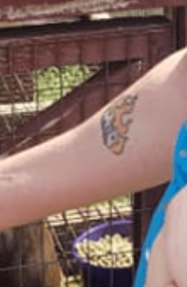 He is described as a white male with short brown hair and brown eyes, standing at 5’ 10” and weighing 170 pounds. He has a tattoo of a cross on his outer bicep and a flame tattoo on his inner forearm.